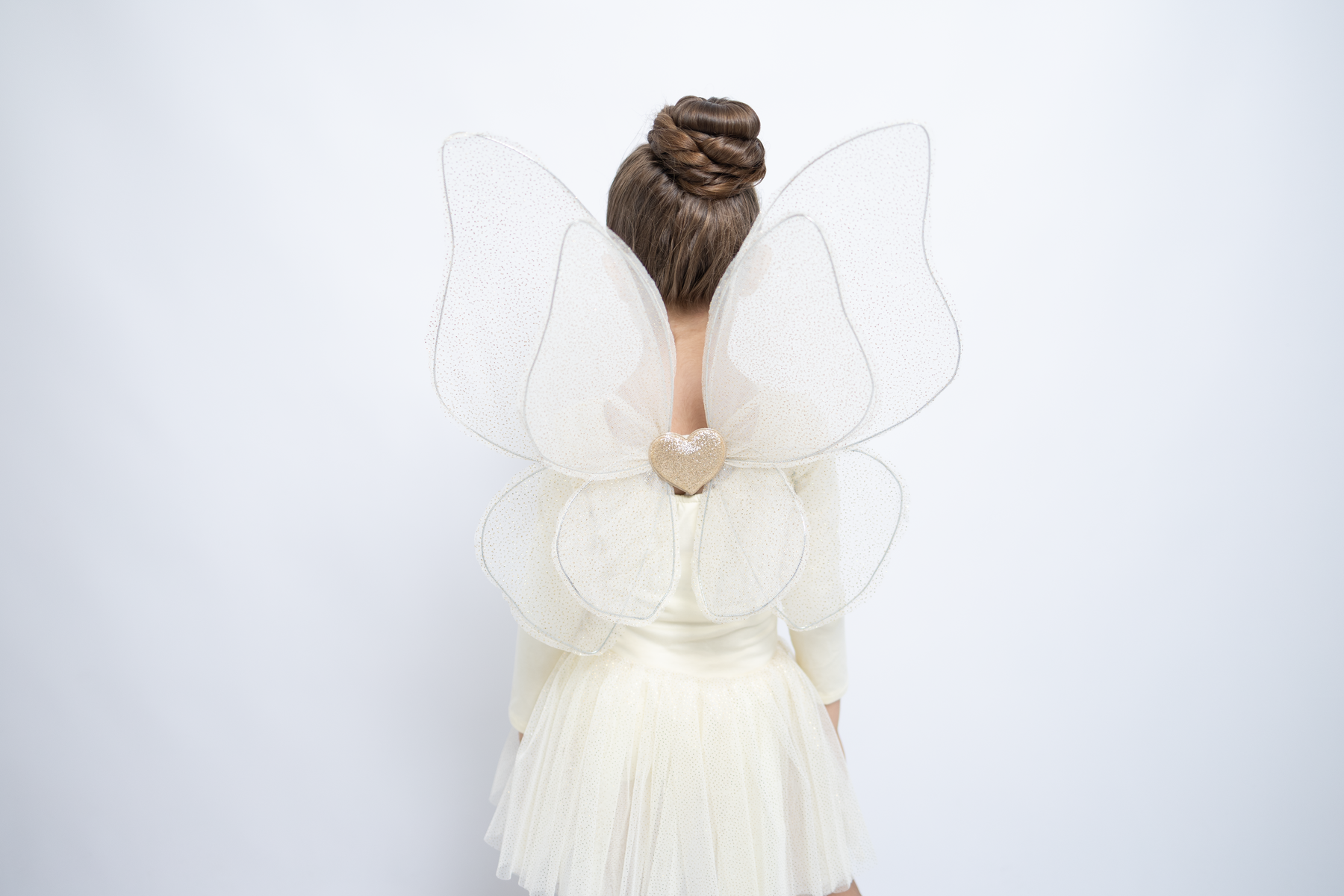 Let the magic begin! The enchanting Anaisa fairy wings in gold sparkle with every flutter and shimmer like stardust in the morning sun. Delicately layered in soft glitter tulle and decorated with a golden heart in the middle, they are perfect for little daydreamers and festive whirlwind wonders alike.
